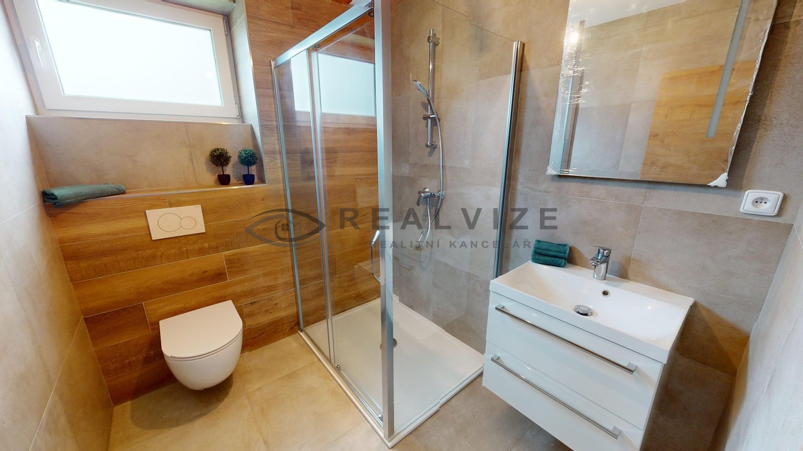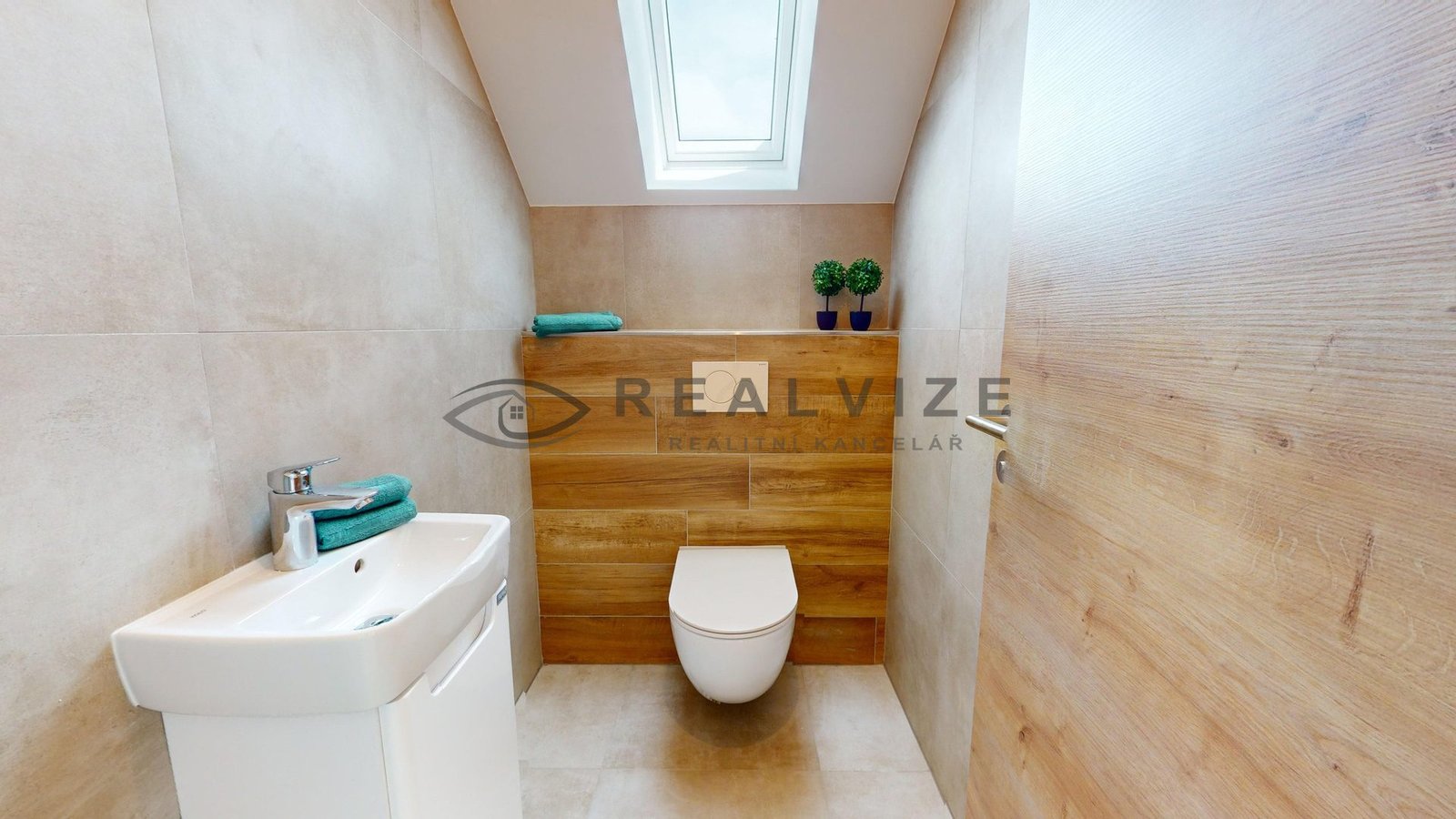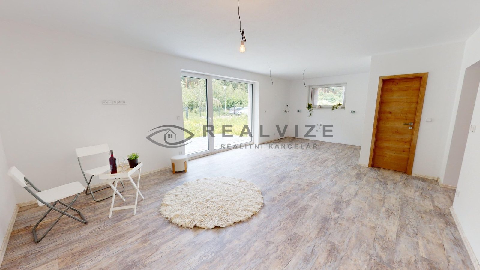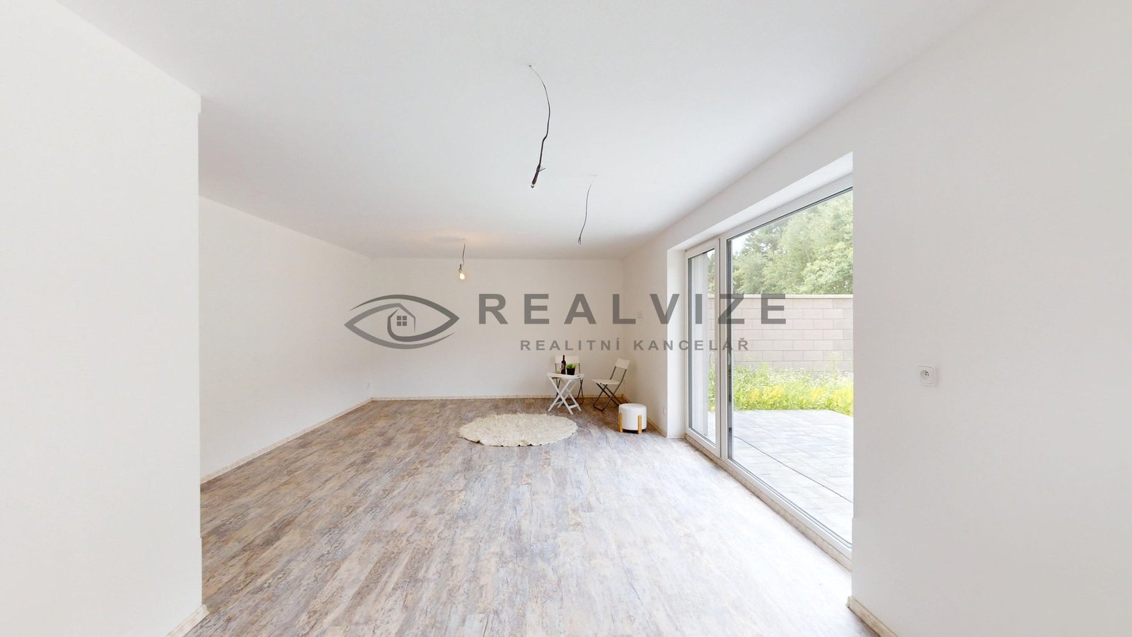 1 NP – Zádveří se vstupní chodbou 6,90 m2, koupelna s WC 3,70 m2, technická místnost 6,30 m2, chodba 3,50 m2, komora 1,35 m2, schodiště 4,85 m2, šatna 5,30 m2, Obývací pokoj + kuchyňský kout 33 m2 se vstupem na terasu.
