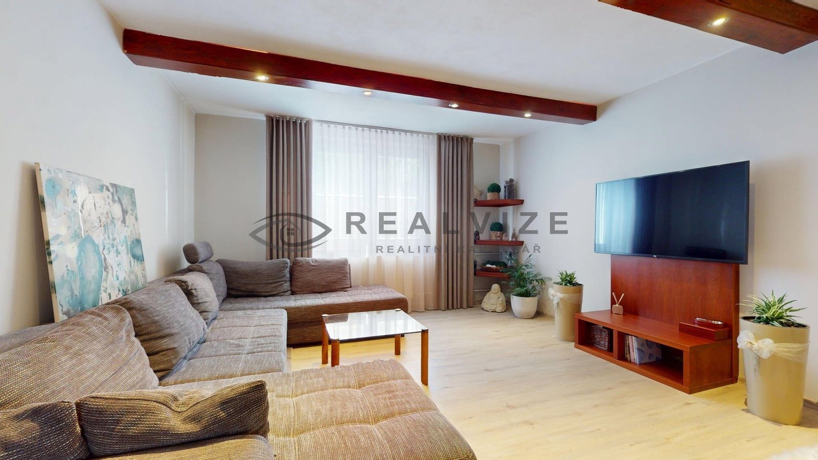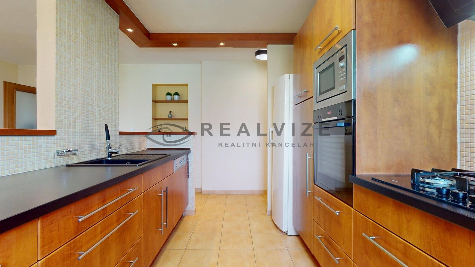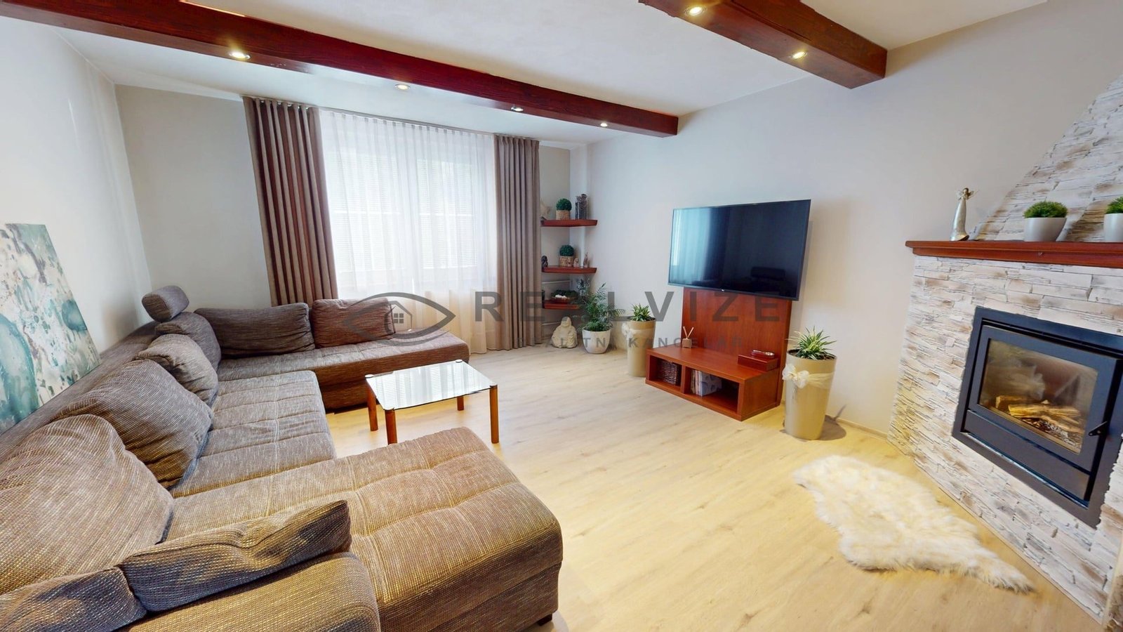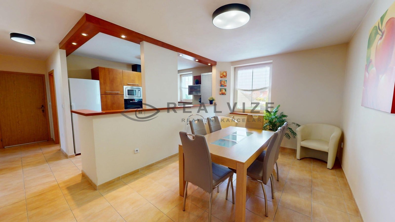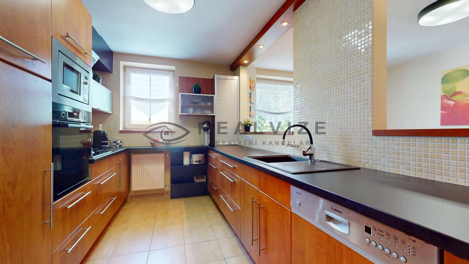 Vstup do domu vás zavede do prostorného a světlého interiéru, který kombinuje moderní prvky s příjemnou domácí atmosférou. Kuchyně je vybavena kvalitními vestavnými spotřebiči, dostatkem úložných prostor a navazuje na jídelní a obývací část. Obývací pokoj je útulně zařízen a dominuje mu krb, který umocňuje celkovou pohodu. V domě jsou dále ložnice, dětské pokoje i pracovna, vše v jednotném, čistém stylu s důrazem na praktičnost. Koupelna nabízí dvojité umyvadlo, sprchový kout a prostor pro pračku i sušičku. Podlahy v obytných místnostech jsou plovoucí, v koupelně a kuchyni je dlažba.