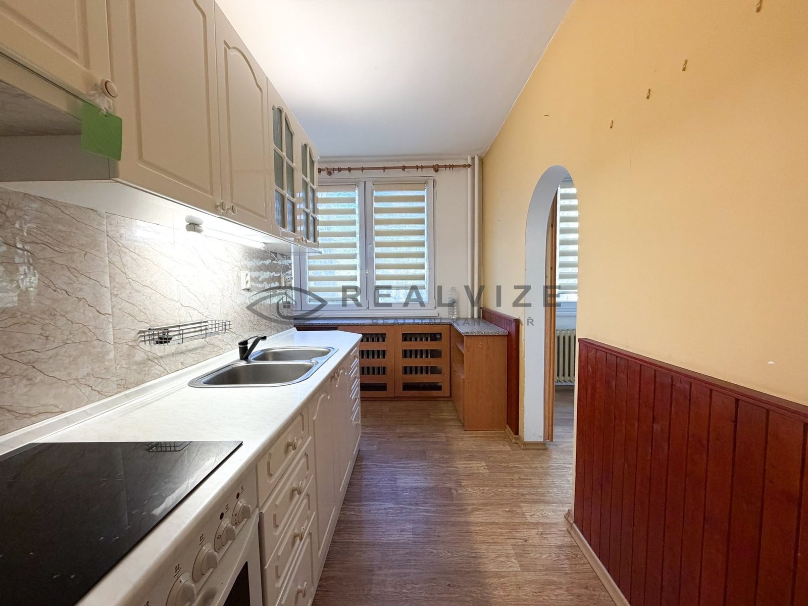 Kuchyně je samostatná a poskytuje dostatek místa pro jídelní část. V bytě se dále nachází koupelna s vanou a praktickou zástěnou pro sprchování, samostatné úložné prostory a vestavěné skříně, které oceníte při každodenním fungování.