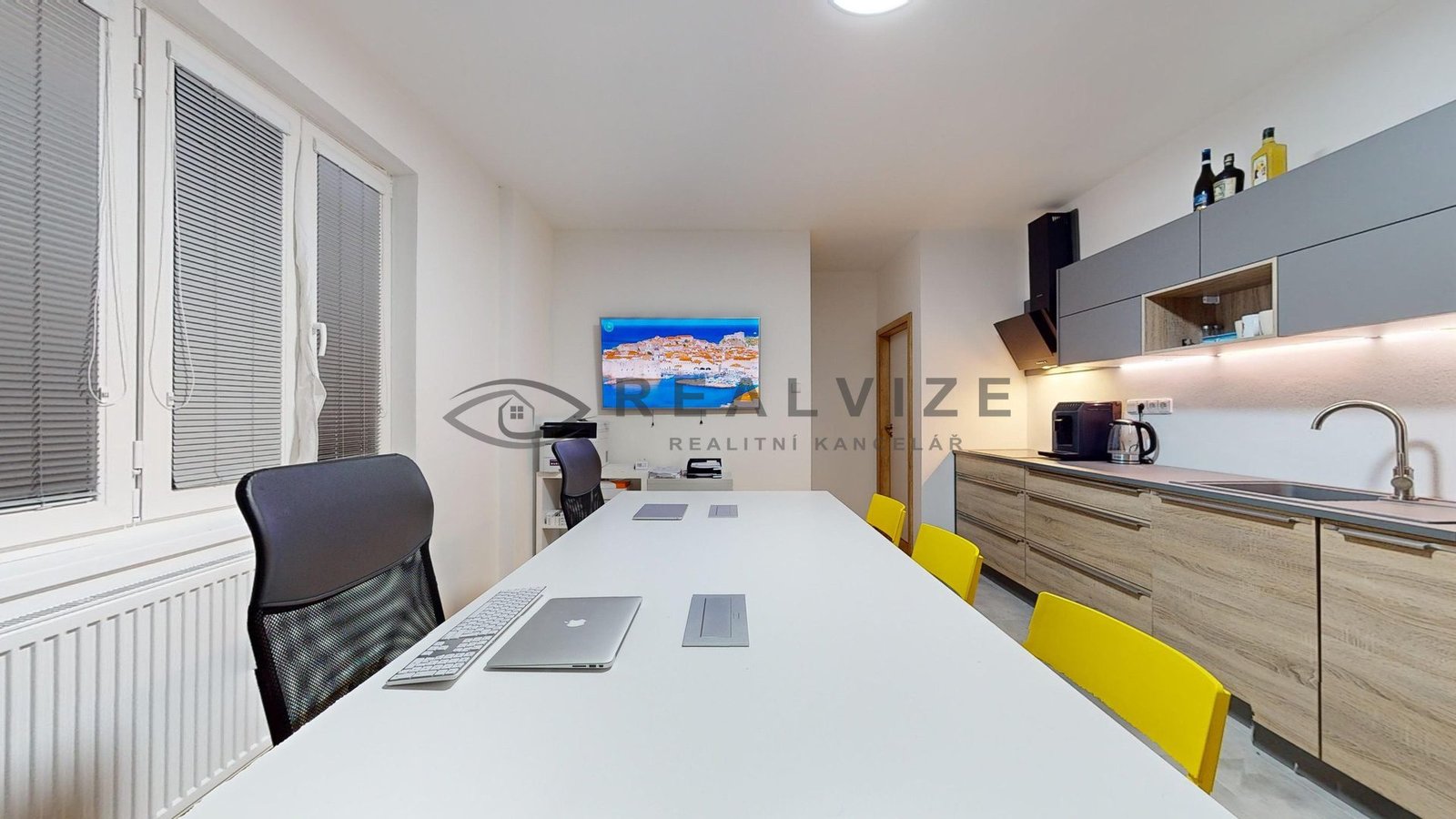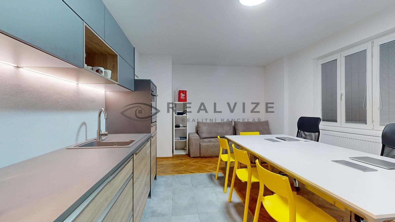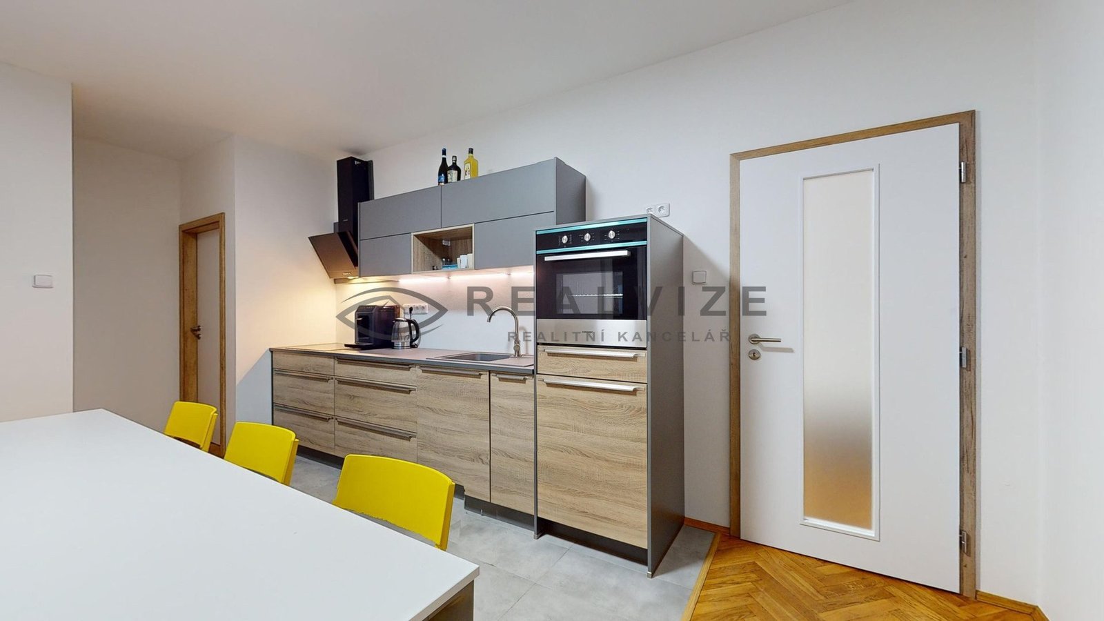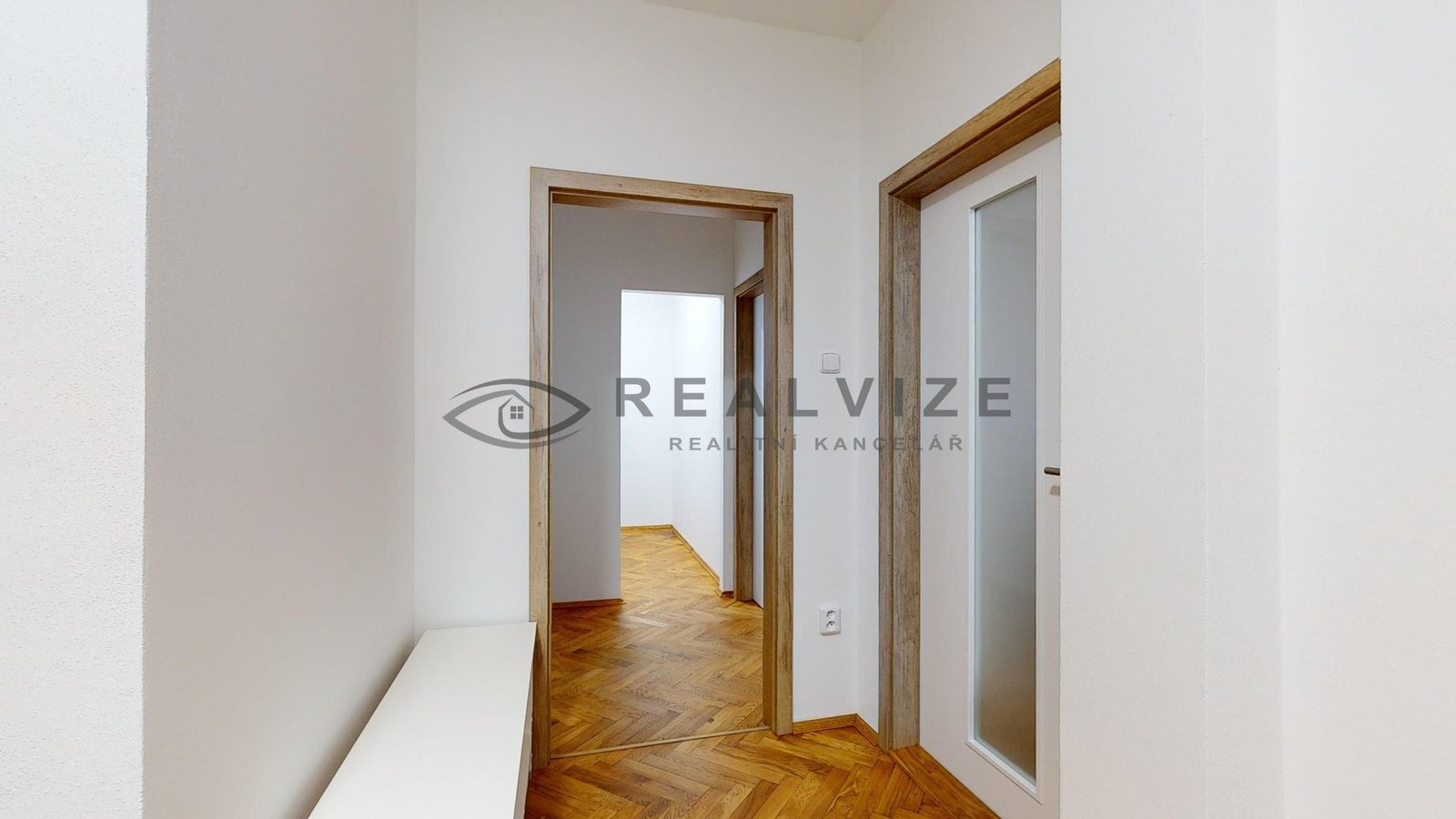 Byt se vyznačuje světlým a prostorným interiérem, který zahrnuje obytnou místnost s novým kuchyňským koutem (kuchyňská linka včetně vestavěných spotřebičů), dva samostatné pokoje, ložnici se samostatnou šatnou, koupelnu, samostatné WC, spíž a prosklenou místnost s příjemným výhledem.